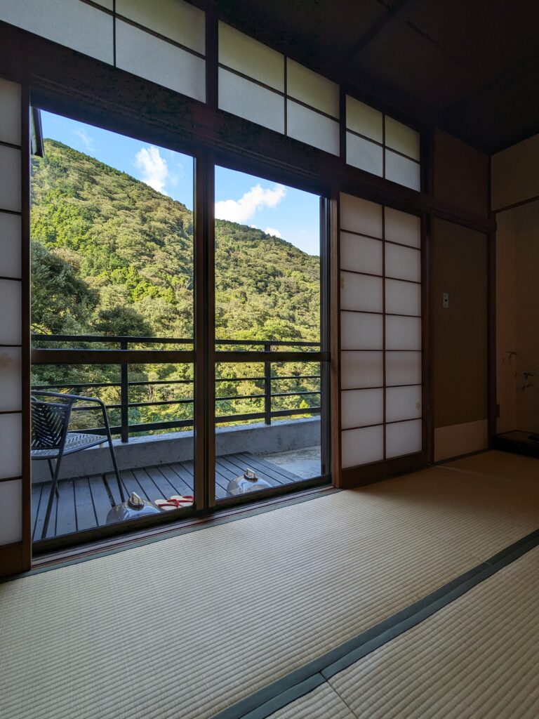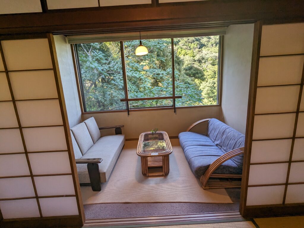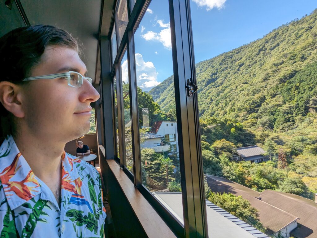 Auf diese Gegend haben wir schon seit unserer Buchung hingefiebert: Hakone. Dort haben wir eine Nacht in einem traditionellen japanischen Gasthaus verbracht, einem Ryokan. Der Ort sah bei der Ankunft durch seine reichhaltige Natur schon sehr einladend aus.