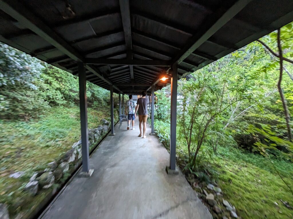 Wie bei vielen Ryokan gibt es auch in unserem Onsen, also heiße Quellen, in denen man baden kann. Wir hatten zu bestimmten Uhrzeiten die Möglichkeit Outdoor- und Indoor-Onsen zu besuchen.