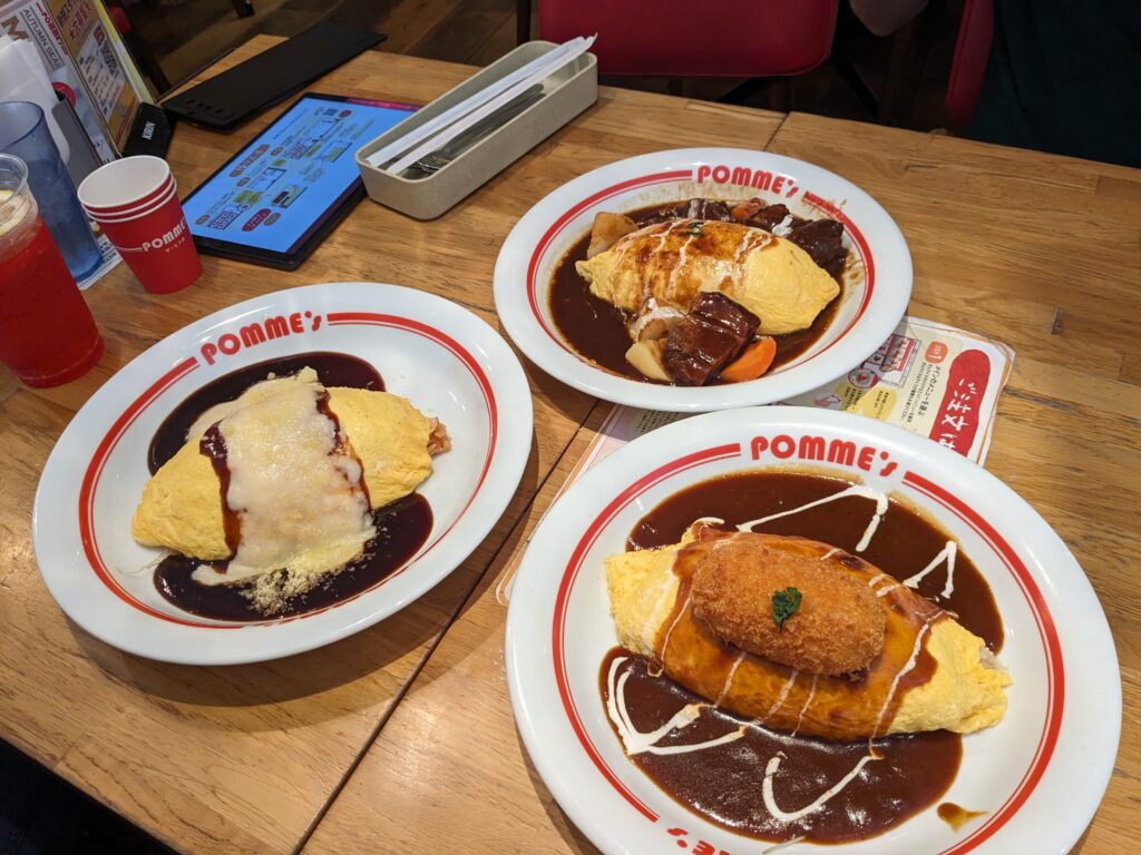 Mittags probierten wir uns an einem weiteren typisch japanischen Gericht: Omelette mit Reis. Wir probierten verschiedene Variationen aus und waren durchaus angetan.