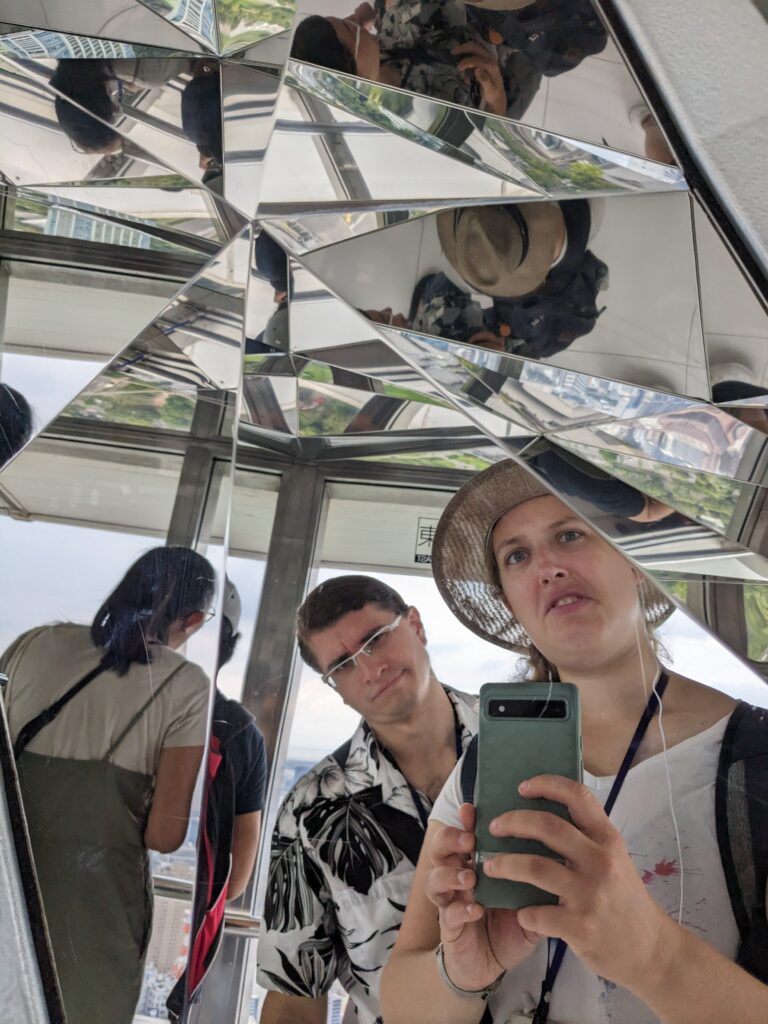 Als nächstes ging es hoch hinaus auf den Fake-Eiffelturm, dem Tokio-Tower. Wir entschieden uns ganz hoch hinauf auf 250m Höhe zu fahren.