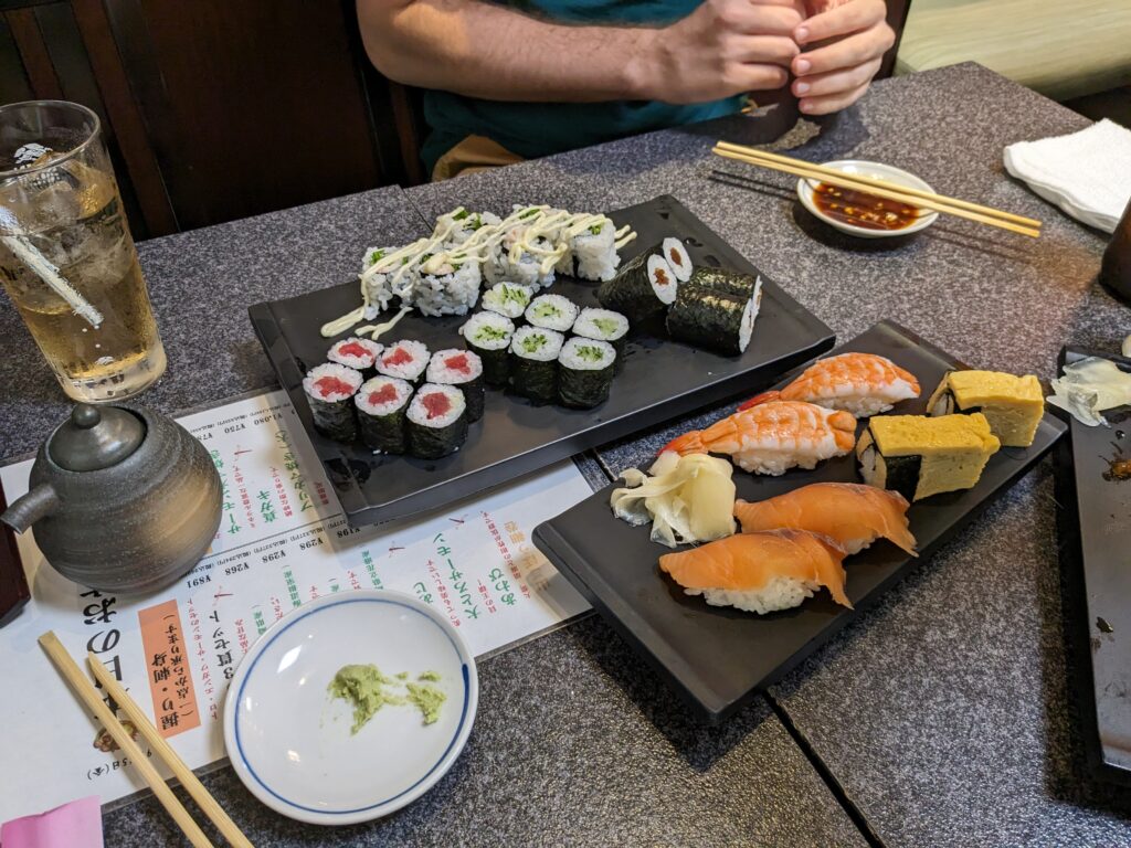 Alles in allem vermutlich das beste kulinarische Erlebnis, in dessen Genuss ich je kam. Und dabei mochte ich vor meinem Japanaufenthalt eigentlich nicht einmal wirklich Fisch (außer panierten „unfischigen“ Fisch..). Von dem, was dieser Künstler hier präsentierte, hätte ich aber vermutlich alles gegessen.