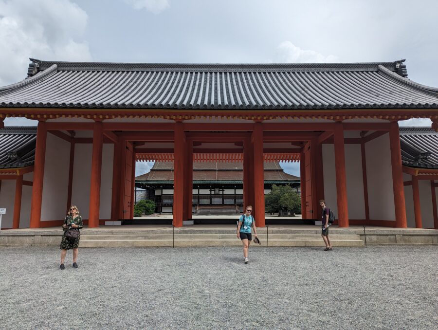 Am heutigen Mittwoch begutachteten wir den Kaiserpalast in Kyoto. Im Gegensatz zum Palast in Tokyo war der Zugang wesentlich unkomplizierter: Der eigentliche Palast liegt in einer großen kaiserlichen Parkanlage, zusammen mit anderen Häusern, Gärten und Anlagen.