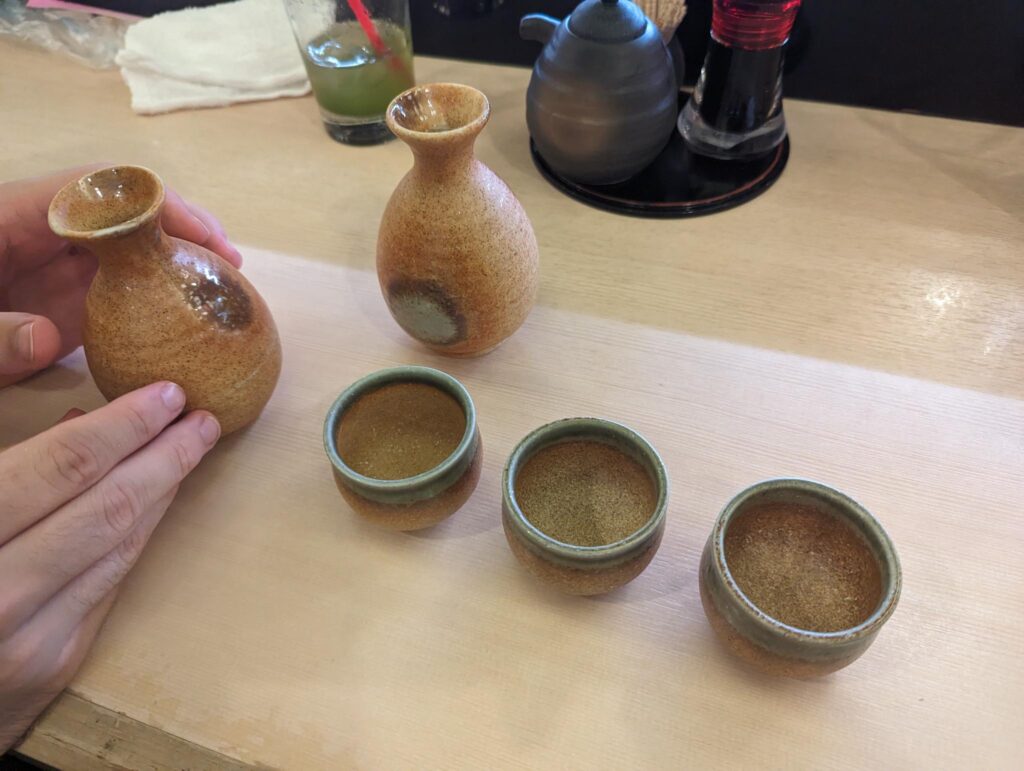 Den Abend verbrachten wir wieder in Osaka und es zog uns noch einmal in einen Laden, in dem wir Okonomiyaki essen konnten. Mit was wir nicht gerechnet hatten: die Zutaten wurden uns hingestellt und man hat uns tatsächlich zugetraut, dass wir das Essen mit der heißen Platte selbst zubereitet bekommen… naja, ratlose Gesichter sprechen für sich und man half uns doch dabei. Wieder einmal ein wirklich gutes Omelette. Ich habe übrigens bei der Bestellung eines grünen Tees ein Grüntee-Sake-Gemisch bekommen…Well.